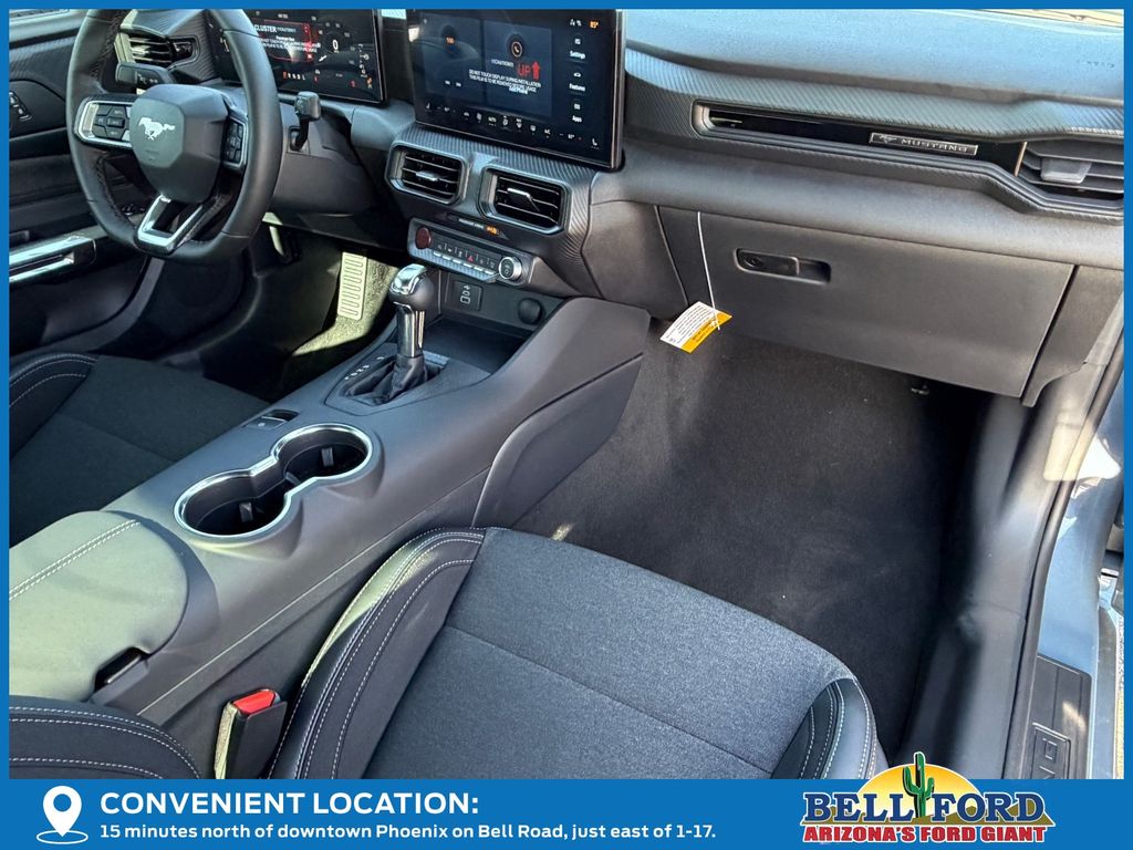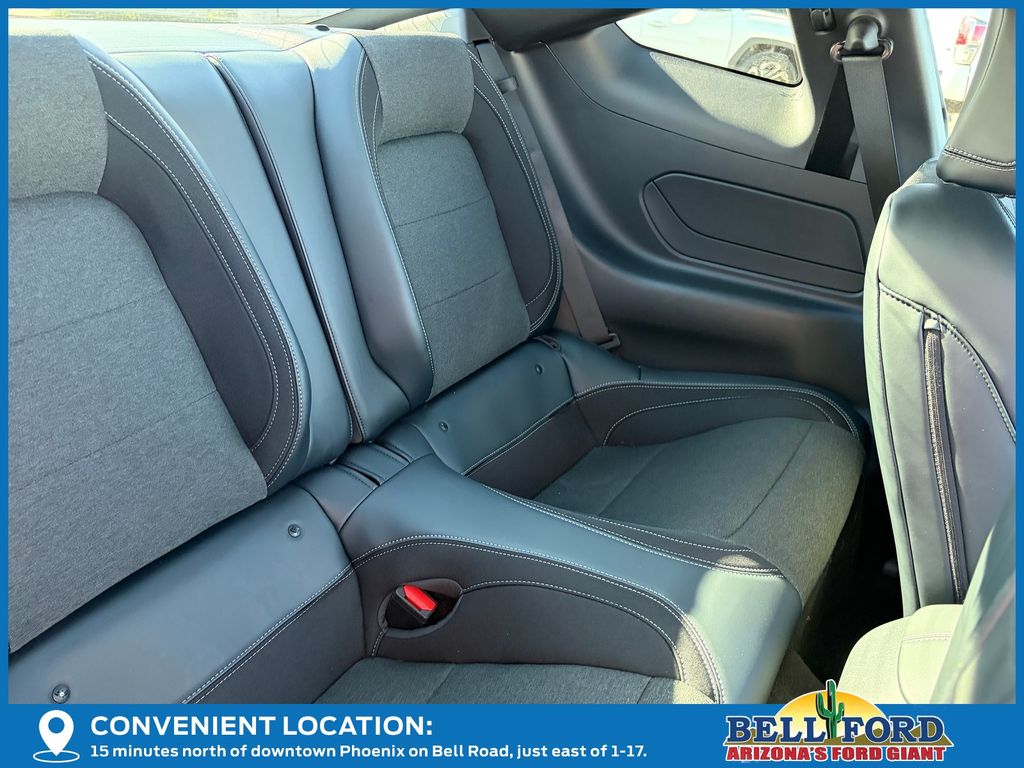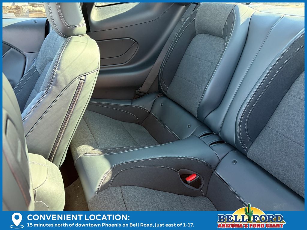 Equipment Group 101A High Package (9-Speaker Stereo System, Cloth/Vinyl Heated Bucket Seats, and SiriusXM w/360L & HD Radio), Mustang Nite Pony Package (Black Front & Rear Pony Badges, Black Mirror Caps, Painted Black Roof, and Wheels: 19" x 8.5" Ebony Black-Painted Aluminum), 1st Row Carpeted Black Floor Mats, 4-Wheel Disc Brakes, 6 Speakers, ABS brakes, Air Conditioning, Alloy wheels, AM/FM radio, AM/FM Stereo, Auto High-beam Headlights, Automatic temperature control, Brake assist, Bumpers: body-color, Cloth Bucket Seats, Compass, Delay-off headlights, Driver door bin, Driver vanity mirror, Dual front impact airbags, Dual front side impact airbags, Electronic Stability Control, Emergency communication system: 911 Assist, Exterior Parking Camera Rear, Four wheel independent suspension, Front anti-roll bar, Front Bucket Seats, Front Center Armrest, Front dual zone A/C, Front reading lights, Fully automatic headlights, Illuminated entry, Knee airbag, Leather Shift Knob, Low tire pressure warning, Occupant sensing airbag, Outside temperature display, Overhead airbag, Overhead console, Panic alarm, Passenger door bin, Passenger vanity mirror, Power door mirrors, Power steering, Power windows, Radio data system, Rain sensing wipers, Rear anti-roll bar, Rear Parking Sensors, Rear window defroster, Remote keyless entry, Speed control, Speed-sensing steering, Speed-Sensitive Wipers, Split folding rear seat, Sport steering wheel, Steering wheel mounted audio controls, SYNC 4, Tachometer, Telescoping steering wheel, Tilt steering wheel, Traction control, Trip computer, Variably intermittent wipers, Voltmeter, Wedge Decklid Spoiler, and Wheels: 18" x 8" Painted Shadow Silver Cast Alum.