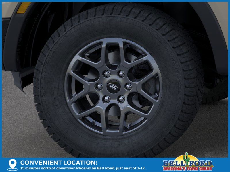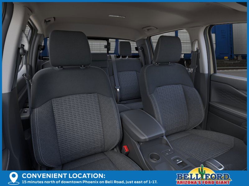 This Ford Ranger is equipped with the following options: Equipment Group 300A Standard (3.73 Axle Ratio, AM/FM Stereo, Cloth Front Bucket Seats, SiriusXM with 360L and 3-Month Trial Subscription, and SYNC 4A with Connected Navigation), Sport Appearance Package (Gray Painted Center Bar and Grille Surround, Gray Painted Front Fascia and Rear Bumper, Sport Box Decal, and Wheels: 17 Inch Gray-Painted Aluminum Alloy Sport), Trailer Tow Package (Class IV Trailer Hitch Receiver), 4-Wheel Disc Brakes, 6 Speakers, ABS brakes, Air Conditioning, Alloy wheels, AM/FM radio: SiriusXM with 360L, Auto High-beam Headlights, Auto-dimming Rear-View mirror, Black Running Boards, Brake assist, Compass, Delay-off headlights, Driver door bin, Driver vanity mirror, Dual front impact airbags, Dual front side impact airbags, Electronic Stability Control, Emergency communication system: SYNC 4 911 Assist, Front anti-roll bar, Front Bucket Seats, Front Center Armrest, Front fog lights, Front reading lights, Front wheel independent suspension, Fully automatic headlights, Illuminated entry, Leather Shift Knob, Low tire pressure warning, Navigation system: Connected Navigation, Occupant sensing airbag, Outside temperature display, Overhead airbag, Overhead console, Panic alarm, Passenger door bin, Passenger vanity mirror, Power door mirrors, Power steering, Power windows, Rear reading lights, Rear seat center armrest, Rear step bumper, Rear window defroster, Remote keyless entry, Security system, Speed control, Speed-sensing steering, Steering wheel mounted audio controls, Telescoping steering wheel, Tilt steering wheel, Traction control, Trip computer, Variably intermittent wipers, and Voltmeter.