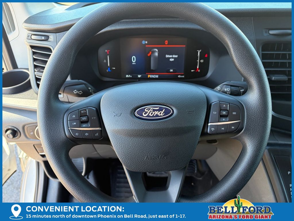 This Ford Transit-150 is equipped with the following options: Ford Connectivity Package (1-Year Included), Order Code 101A, 2 Additional Keys (4 Total), 4 Speakers, 4-Wheel Disc Brakes, ABS brakes, Air Conditioning, AM/FM radio, AM/FM Stereo, Apple CarPlay/Android Auto, Auto High-beam Headlights, Brake assist, Dark Palazzo Gray Cloth Bucket Seats w/Armrests, Dark Palazzo Gray Vinyl Bucket Seats, Delay-off headlights, Driver door bin, Driver's Seat Mounted Armrest, Dual front impact airbags, Dual front side impact airbags, Electronic Stability Control, Emergency communication system: 911 Assist, Exterior Parking Camera Rear, Front & Rear Vinyl Floor Covering, Front anti-roll bar, Front Bucket Seats, Front License Plate Bracket, Front reading lights, Front wheel independent suspension, Full Rear Compartment Lighting, Fully automatic headlights, Illuminated entry, Internet access capable: FordPass Connect 5G, Low tire pressure warning, Navigation system: Connected Navigation, Occupant sensing airbag, Overhead airbag, Panic alarm, Passenger cancellable airbag, Passenger door bin, Passenger-Side B-Pillar Assist Handle, Power door mirrors, Power steering, Power windows, Remote keyless entry, Speed control, Steering wheel mounted audio controls, SYNC 4, Tachometer, Telescoping steering wheel, Tilt steering wheel, Traction control, Variably intermittent wipers, Vinyl Front Bucket Seats, and Wheels: 16" Silver Steel w/Black Hubcap. Price includes: $1000 - Retail Customer Cash. Exp. 01/05/2026