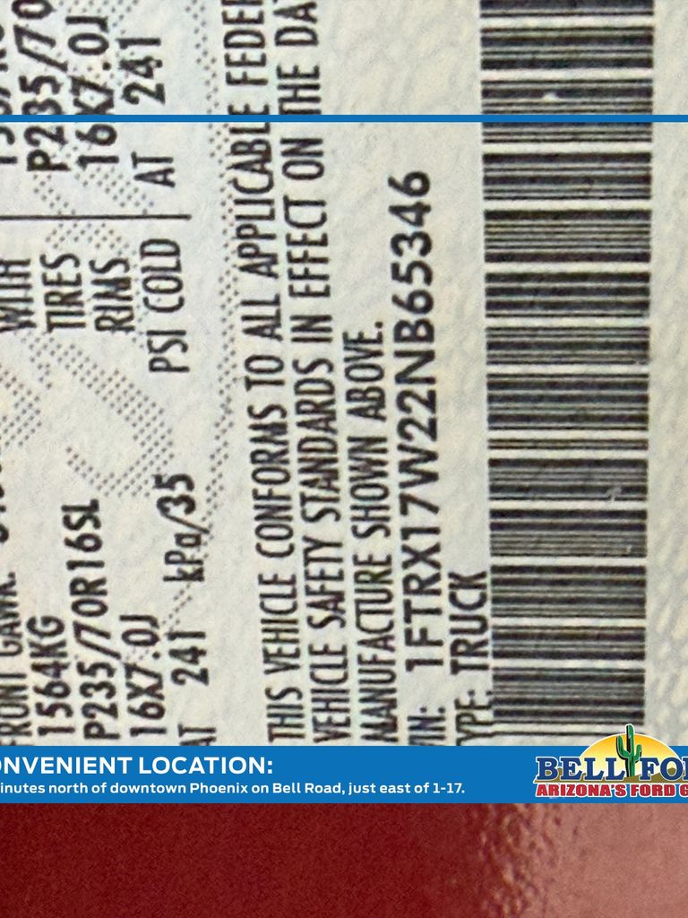 ** HERE AT BELL FORD ITS ALL ABOUT THE EXPERIENCE** Please visit us online at www.bellford.com This Ford F-150 is equipped with the following options: Convenience Group, 4 Speakers, 4-Wheel ABS/4-Wheel Disc Brakes, 4-Wheel Disc Brakes, 60/40 Split Rear Seat, ABS brakes, Air Conditioning, AM/FM radio, Bumpers: chrome, Cargo Light, Chrome Rear Step Bumper, Color-Keyed Carpeting, Driver door bin, Dual front impact airbags, Fail-Safe Cooling, Front anti-roll bar, Front reading lights, Front wheel independent suspension, Passenger cancellable airbag, Passenger door bin, Passenger vanity mirror, Power Adjustable Pedals, Power steering, Rear Child Seat Tethers, Rear step bumper, SecuriLock, Speed Control w/Tilt Steering Wheel, Split folding rear seat, Tailgate Lock, Variably intermittent wipers, and VoltmeteR.
