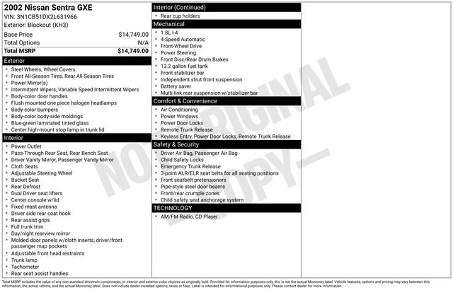 Blackout 2002 Nissan Sentra GXE FWD 4-Speed Automatic with Overdrive 1.8L I4 DOHC 16V