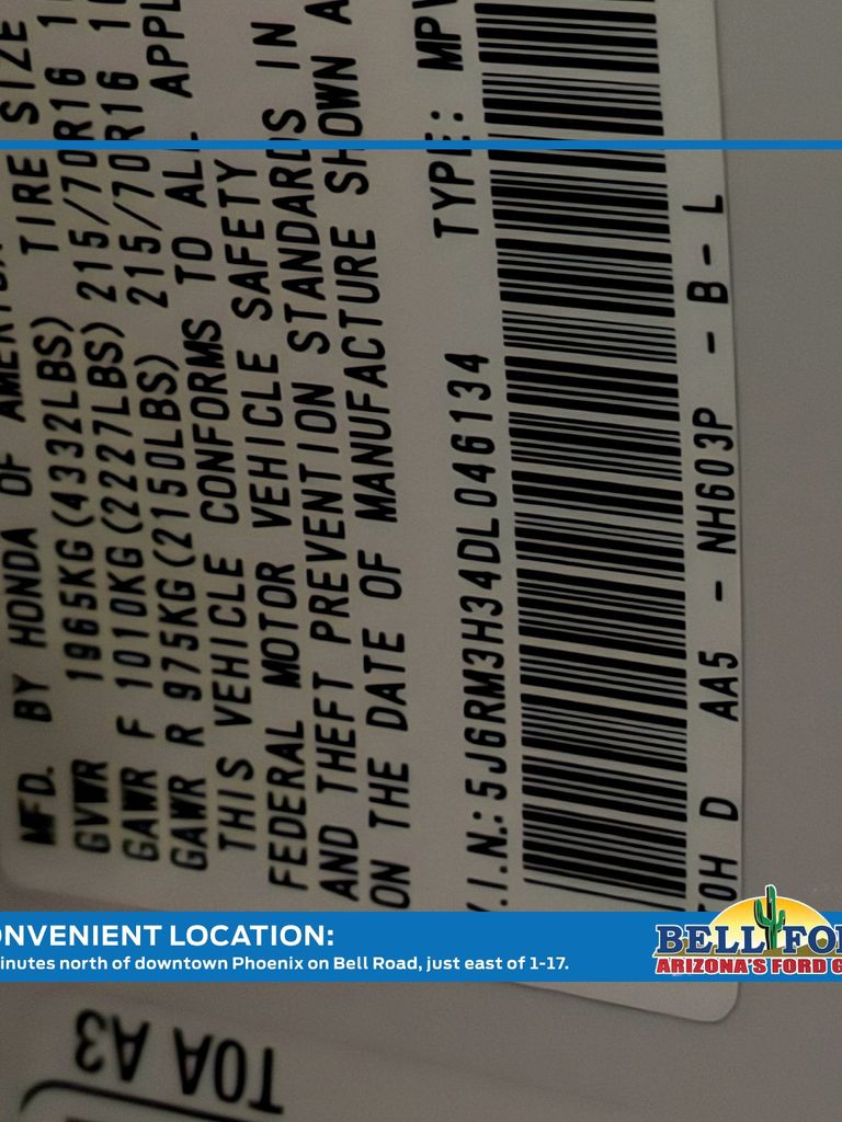 - VIN : 5J6RM3H34DL046134