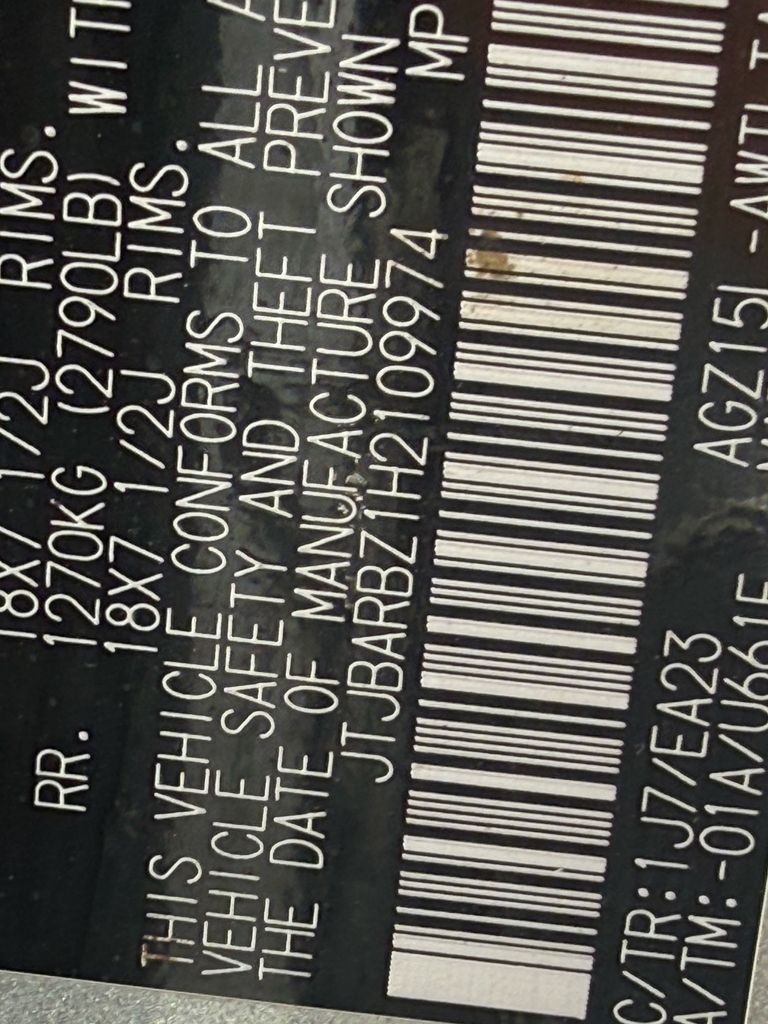 - VIN : JTJBARBZ1H2109974