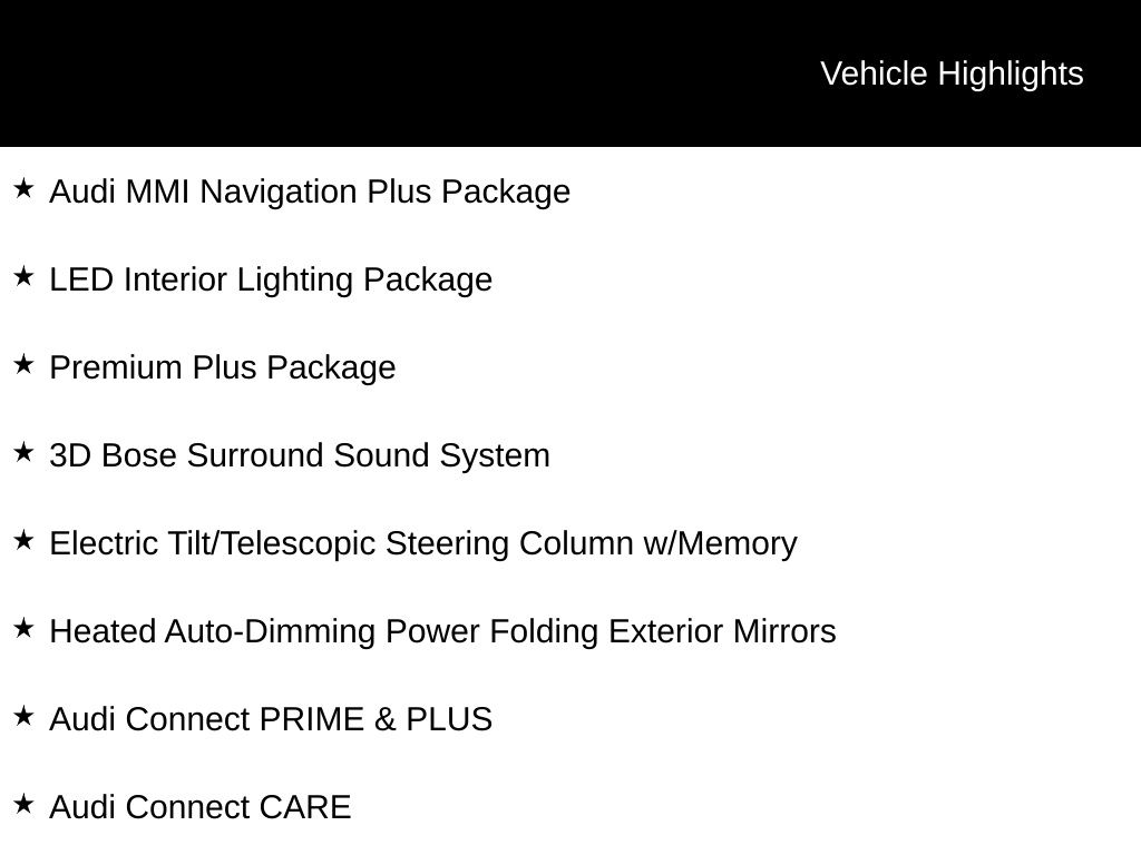- Radio: MMI Radio Plus w/Audi Sound System