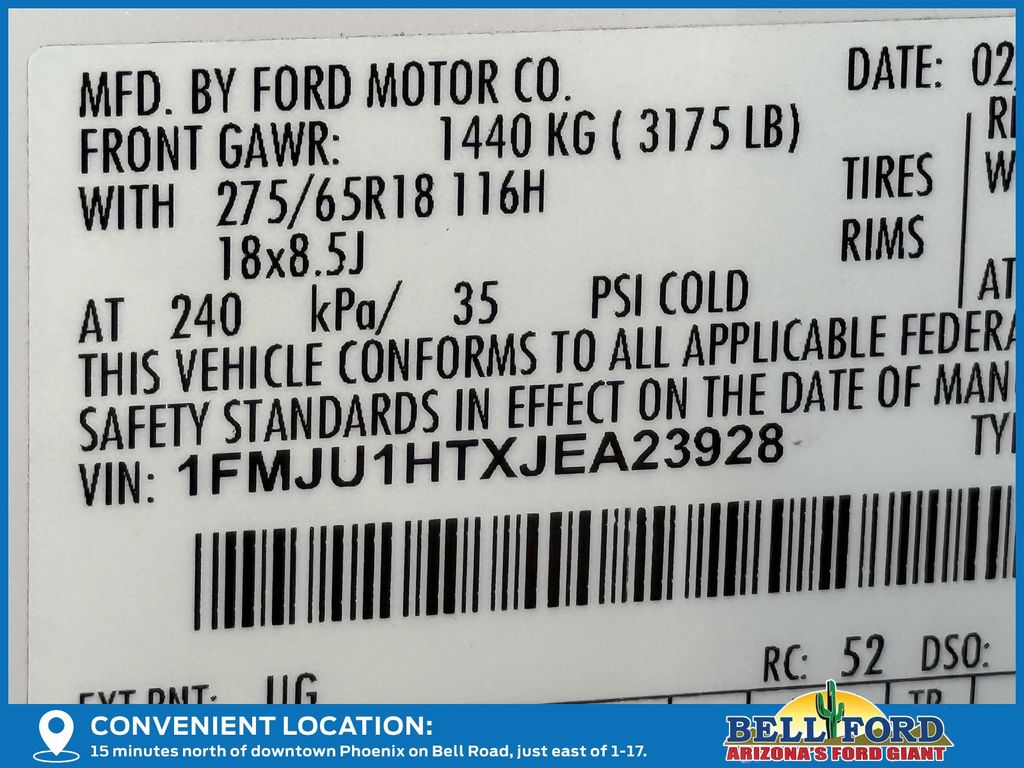 ** HERE AT BELL FORD ITS ALL ABOUT THE EXPERIENCE** Please visit us online at www.bellford.com This Ford Expedition is equipped with the following options: Equipment Group 201A (3rd Row Vinyl Seat, Heated Body-Color Power Mirrors, and Leather-Trimmed 1st & 2nd Row Seats), Ford Blue Certified Certified, 18" Machined-Face Aluminum Wheels, 1st & 2nd Row Floor Liners, 3.15 Axle Ratio, 3rd row seats: split-bench, 4-Wheel Disc Brakes, 9 Speakers, ABS brakes, Adjustable pedals, Air Conditioning, Alloy wheels, AM/FM radio: SiriusXM, Auto-dimming Rear-View mirror, Brake assist, Bumpers: body-color, CD player, Cloth Front Bucket Seats, Compass, Delay-off headlights, Driver door bin, Driver vanity mirror, Dual front impact airbags, Dual front side impact airbags, Electronic Stability Control, Emergency communication system: SYNC 3 911 Assist, Exterior Parking Camera Rear, Four wheel independent suspension, Front anti-roll bar, Front Bucket Seats, Front Center Armrest, Front fog lights, Front reading lights, Fully automatic headlights, Garage door transmitter, Heated door mirrors, Illuminated entry, Leather steering wheel, Low tire pressure warning, Occupant sensing airbag, Outside temperature display, Overhead airbag, Overhead console, Panic alarm, Passenger door bin, Passenger vanity mirror, Power door mirrors, Power driver seat, Power steering, Power windows, Radio data system, Radio: AM/FM Stereo CD/MP3 Player, Rear air conditioning, Rear anti-roll bar, Rear Parking Sensors, Rear reading lights, Rear window defroster, Rear window wiper, Remote keyless entry, Roof rack: rails only, Security system, SiriusXM Satellite Radio, Speed control, Speed-sensing steering, Speed-Sensitive Wipers, Split folding rear seat, Steering wheel mounted audio controls, SYNC Communication & Entertainment System, Tachometer, Telescoping steering wheel, Tilt steering wheel, Traction control, Trip computer, Variably intermittent wipers, and VoltmeteR.