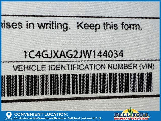 - VIN : 1C4GJXAG2JW144034