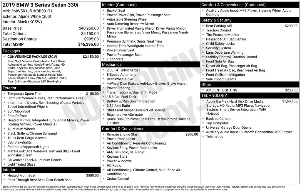 This 2019 BMW 3 Series 330i is equipped with an impressive array of features that elevate the driving experience. Highlights include: