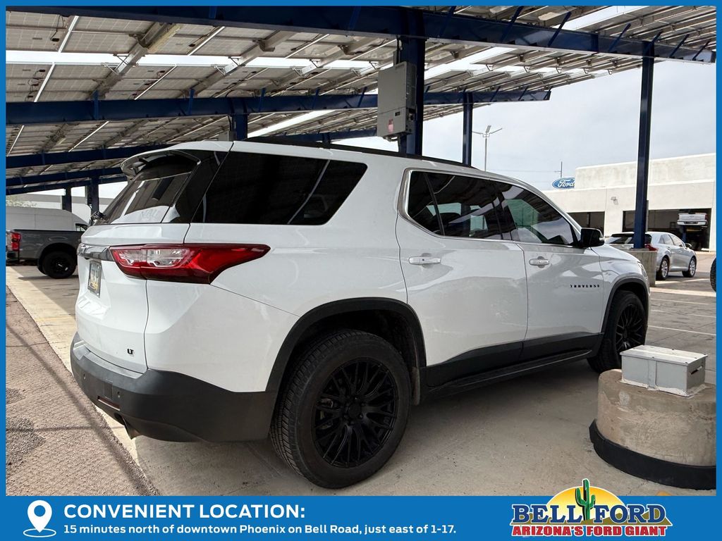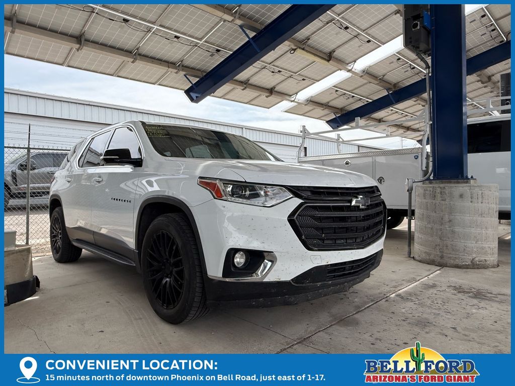 ** HERE AT BELL FORD ITS ALL ABOUT THE EXPERIENCE** Please visit us online at www.bellford.com This Chevrolet Traverse is equipped with the following options: Blackout Package (LPO) (Black Finish Grille (LPO), Black Mirror Caps (LPO), Black Rear License Plate Applique (LPO), Front & Rear Black Bowtie Emblems (LPO), and Gloss Black Emblem Kit (LPO)), Convenience & Driver Confidence Package (4.2" Multi-Color Enhanced Driver Instrument Display, Heated Driver & Front Passenger Seats, Lane Change Alert w/Side Blind Zone Alert, Radio: Chevrolet Infotainment AM/FM w/8" Screen, Rear Cross Traffic Alert, Rear Park Assist w/Audible Warning, Rear Power Liftgate, Remote Start, SiriusXM Radio, and Universal Home Remote), Hit The Road Package (Black Molded Assist Steps (LPO) and Black Roof Rack Cross Rails), Interior Protection Package (LPO) (1st & 2nd Row All-Weather Floor Mats, 3rd Row All-Weather Floor Mats, and All-Weather Cargo Mat (LPO)), Preferred Equipment Group 1LT, 3.49 Axle Ratio, 3rd row seats: split-bench, 4-Wheel Disc Brakes, 6 Speakers, 7-Passenger Seating (2-2-3 Seating Configuration), ABS brakes, Air Conditioning, Alloy wheels, AM/FM radio: SiriusXM, Apple CarPlay/Android Auto, Automatic temperature control, Brake assist, Bumpers: body-color, Compass, Delay-off headlights, Driver door bin, Driver vanity mirror, Dual front impact airbags, Dual front side impact airbags, Electronic Stability Control, Emergency communication system, Four wheel independent suspension, Front anti-roll bar, Front Bucket Seats, Front Center Armrest, Front dual zone A/C, Front fog lights, Front reading lights, Fully automatic headlights, Heated door mirrors, High-Intensity Discharge Headlights, Illuminated entry, Low tire pressure warning, Occupant sensing airbag, Outside temperature display, Overhead airbag, Overhead console, Panic alarm, Passenger door bin, Passenger vanity mirror, Power door mirrors, Power driver seat, Power steering, Power windows, Premium Cloth Seat Trim, Radio data system, Radio: Chevrolet Infotainment System AM/FM Stereo, Rear air conditioning, Rear anti-roll bar, Rear reading lights, Rear window defroster, Rear window wiper, Remote keyless entry, Roof rack: rails only, Security system, Speed control, Speed-sensing steering, Spoiler, Steering wheel mounted audio controls, Tachometer, Telescoping steering wheel, Tilt steering wheel, Traction control, Trip computer, Turn signal indicator mirrors, Variably intermittent wipers, Voltmeter, and Wheels: 18" Bright Silver Painted AluminuM.
