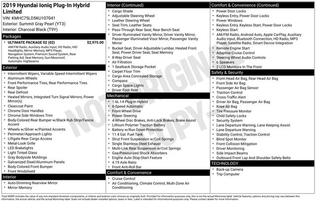 Summit Gray Pearl 2019 Hyundai Ioniq Plug-In Hybrid FWD 6-Speed EcoShift Dual Clutch 1.6L I4 DGI Hybrid DOHC 16V LEV3-SULEV30