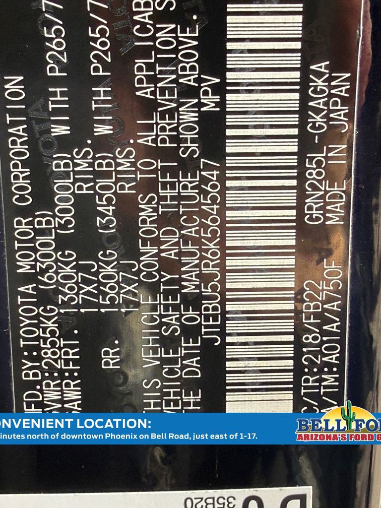 - VIN : JTEBU5JR6K5645647