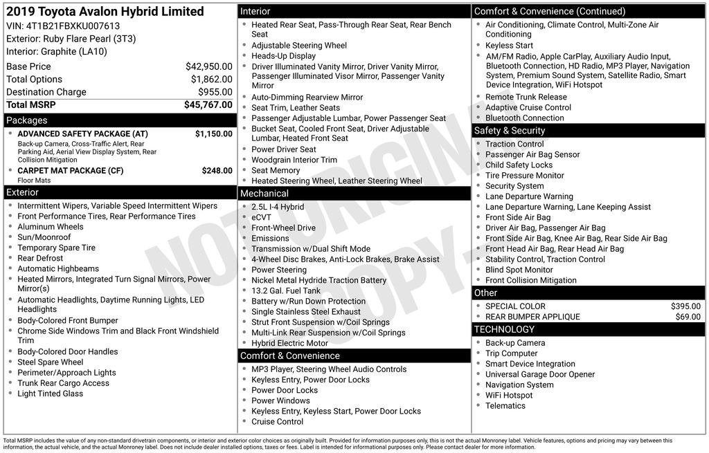 https://ford.dealerleads.com/cars/Used/2019/Toyota/Avalon+Hybrid/Limited/169435272019 Toyota Avalon Hybrid Limited