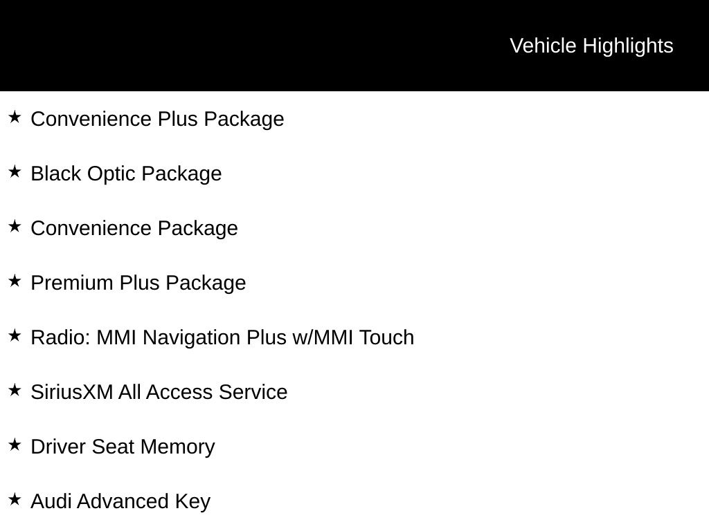 - Radio: MMI Navigation Plus w/MMI Touch