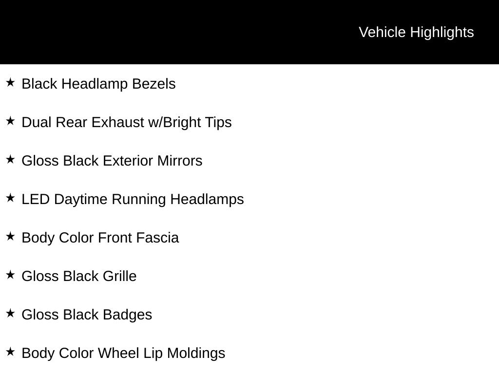 - Wheels: 20" x 8.0" High Gloss Black Aluminum