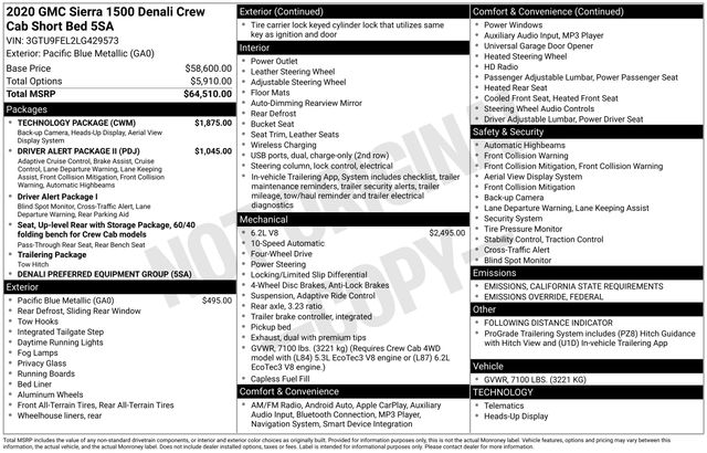 Pacific Blue Metallic 2020 GMC Sierra 1500 Denali 4WD 10-Speed Automatic EcoTec3 6.2L V8