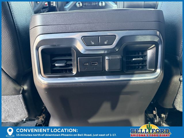 10-Speed Automatic, 4WD, Jet Black Leather, 12-Volt Rear Auxiliary Power Outlet, 120-Volt Bed Mounted Power Outlet, 120-Volt Instrument Panel Power Outlet, 170 Amp Alternator, 2 USB Ports, 2 USB Ports (1st Row), 4G LTE Wi-Fi Hotspot Capable, Adaptive Cruise Control - Camera, Apple CarPlay/Android Auto, Automatic Emergency Braking, Auxiliary External Transmission Oil Cooler, Bed View Camera, Chrome Recovery Hooks, Chrome Wheel To Wheel Assist Steps, Color-Keyed Carpeting Floor Covering, Compass, Deep-Tinted Glass, Driver Alert Package I, Driver Alert Package II, Electric Rear-Window Defogger, Electrical Lock Control Steering Column, Floor-Mounted Center Console, Following Distance Indicator, Forward Collision Alert, Front Pedestrian Braking, GMC Connected Access Capable, HD Radio, HD Rear Vision Camera, HD Surround Vision w/2 Trailer View Camera Provisions, Heated 2nd Row Outboard Seats, Heated Driver & Front Outboard Passenger Seating, Heavy-Duty Rear Locking Differential, High-Capacity Air Filter, Hill Descent Control, Hitch Guidance, Hitch Guidance w/Hitch View, In-Vehicle Trailering App, Integrated Trailer Brake Controller, IntelliBeam Automatic High Beam On/Off, Keyless Open & Start, Lane Change Alert w/Side Blind Zone Alert, Lane Keep Assist w/Lane Departure Warning, LED Cargo Area Lighting, Manual Tilt-Wheel & Telescoping Steering Column, Multicolor 15" Diagonal Head-Up Display, Navigation System, OnStar & GMC Connected Services Capable, Power Door Locks, Power Front Passenger Windows w/Express Up/Down, Power Front Windows w/Driver Express Up/Down, Power Rear Windows w/Express Down, Power Sliding Rear Window w/Rear Defogger, Preferred Equipment Group 5SA, ProGrade Trailering System, Rear Camera Mirror, Rear Cross Traffic Alert, Rear Dual USB Charging-Only Ports, Rear Wheelhouse Liners, Remote Vehicle Starter System, Safety Alert Seat, Signature Denali Grille, Spray-On Pickup Bed Liner w/Denali Logo, Steering Wheel Audio Controls, Technology Package, Theft Deterrent System (Unauthorized Entry), Trailering Package, Ultrasonic Front & Rear Park Assist, Universal Home Remote, Ventilated Driver & Front Passenger Seats, Wireless Charging.