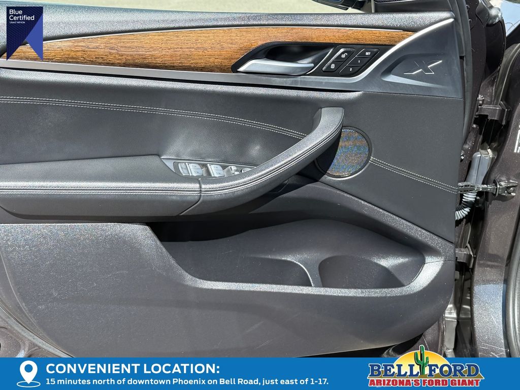 The interior of this X3 is outfitted in premium Vernasca leather upholstery with oyster stitching, creating a sophisticated and luxurious cabin. The front seats are ventilated, ensuring maximum comfort on even the hottest Arizona days. The panoramic moonroof floods the cabin with natural light, enhancing the sense of spaciousness and openness.