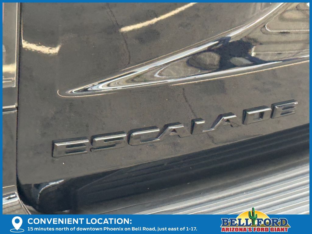 - Gloss black Escalade nameplate and monochrome Cadillac emblems