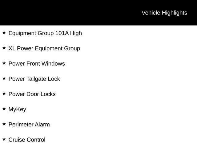 Cruise Control, Equipment Group 101A High, Illuminated Entry, MyKey, Perimeter Alarm, Power Door Locks, Power Front Windows, Power Glass Sideview Mirrors w/Black Skull Caps, Power Tailgate Lock, Reverse Sensing System, XL Power Equipment Group.