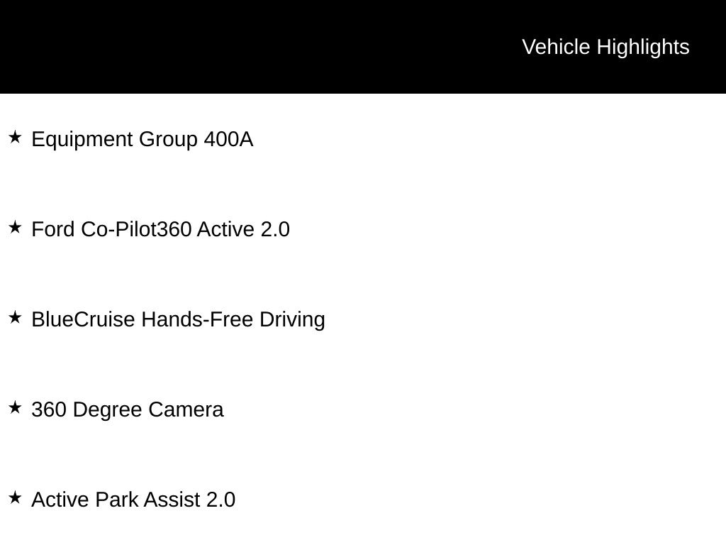 The Mach-E GT's Dual Electric Motor and Single-Speed Automatic AWD powertrain delivers an exhilarating driving experience, with a city MPGe of 90 and a highway MPGe of 77. Beneath the sleek exterior, you'll find a host of advanced features that elevate the driving experience, including the Ford Co-Pilot360 Active 2.0 suite, which includes BlueCruise Hands-Free Driving, a 360-degree camera, and Active Park Assist 2.0.