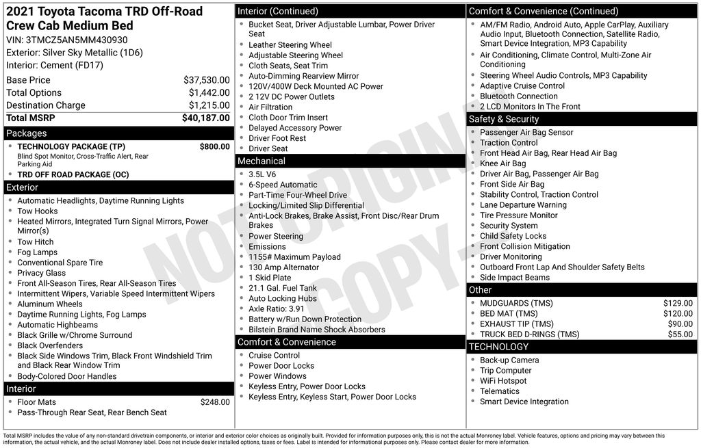 https://ford.dealerleads.com/cars/Used/2021/Toyota/Tacoma/TRD+Off-Road/171055442021 Toyota Tacoma TRD Off-Road