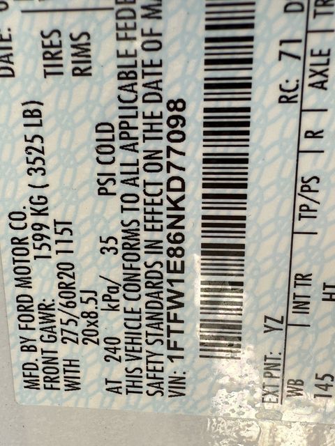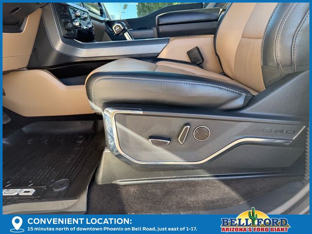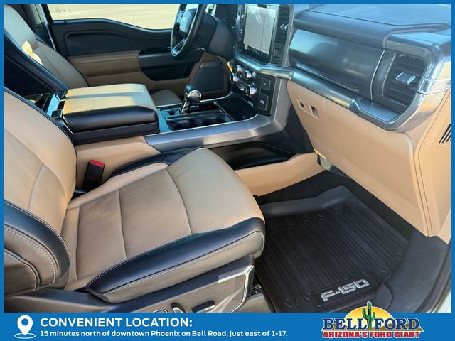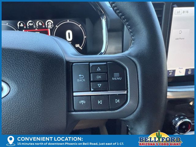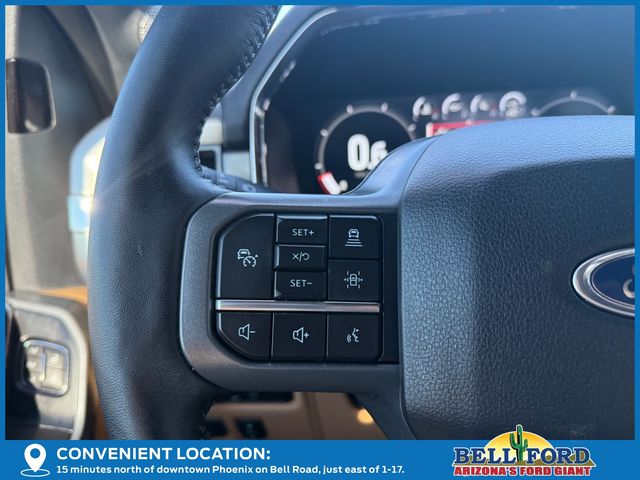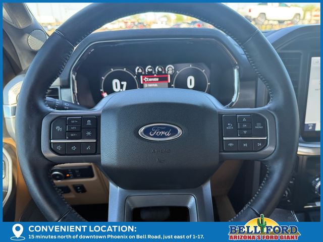 4WD, 2nd Row Heated Seats, 4x4 FX4 Off-Road Bodyside Decal, 6" Bright Polished Running Board, Active Park Assist 2.0, Bed Utility Package, BlueCruise, BoxLink, Chrome 2-Bar Grille w/4 Minor Bars, Chrome Door & Tailgate Handles w/Body-Color Bezel, Chrome Single-Tip Exhaust, Chrome Skull Caps on Exterior Mirrors, Class IV Trailer Hitch Receiver, Equipment Group 502A High, Extended Range 36 Gallon Fuel Tank, Ford Co-Pilot360 Active 2.0, FX4 Off-Road Package, Heated Steering Wheel, Hill Descent Control, Integrated Trailer Brake Controller, Lariat Chrome Appearance Package, Leather-Trimmed Bucket Seats, LED Box Lighting, LED Projector w/Dynamic Bending Headlamps, Max Trailer Tow Package, Monotube Rear Shocks, Off-Road Tuned Front Shock Absorbers, Onboard 400W Outlet, Power Glass Sideview Mirr w/Chrome Skull Caps, Power Tailgate, Power Tilt/Telescoping Steering Column w/Memory, Pro Trailer Backup Assist, Radio: B&O Sound System by Bang & Olufsen, Rain-Sensing Wipers, Rock Crawl Mode, Tailgate Step w/Tailgate Work Surface, Tray Style Floor Liner (47W), Universal Garage Door Opener, Wheels: 18" Chrome-Like PVD, Wireless Charging Pad.