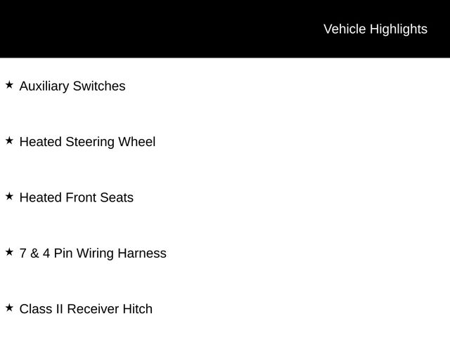 2.0L I4 DOHC, 7 & 4 Pin Wiring Harness, 700 Amp Maintenance Free Battery, Auxiliary Switches, Class II Receiver Hitch, Cold Weather Group, Heated Front Seats, Heated Steering Wheel, Quick Order Package 29V, Remote Start System, Steel Bumper Group, Steel Front Bumper, Steel Rear Bumper, Trailer Tow & HD Electrical Group.