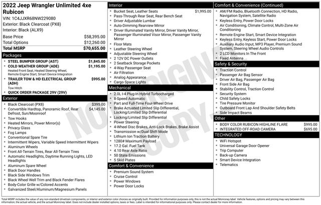 Black Clearcoat 2022 Jeep Wrangler Unlimited Rubicon 4xe 4WD 8-Speed Automatic 2.0L I4 DOHC