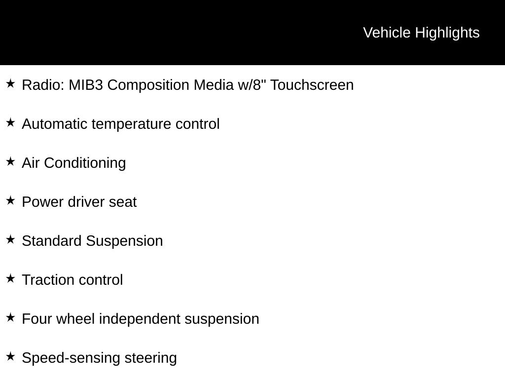 - Radio: MIB3 Composition Media w/8" Touchscreen