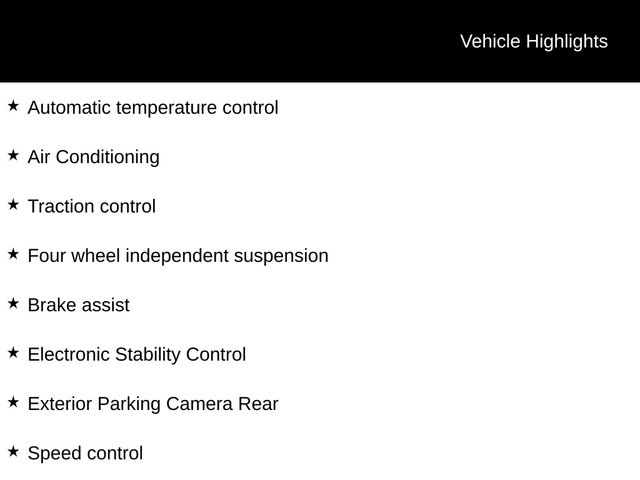 Air Conditioning, Apple CarPlay/Android Auto, Automatic temperature control, Brake assist, Electronic Stability Control, Exterior Parking Camera Rear, Four wheel independent suspension, Speed control, Traction control, Wheels: 7.5" x 18" Twin 10-Spoke Matte Black Alloy.