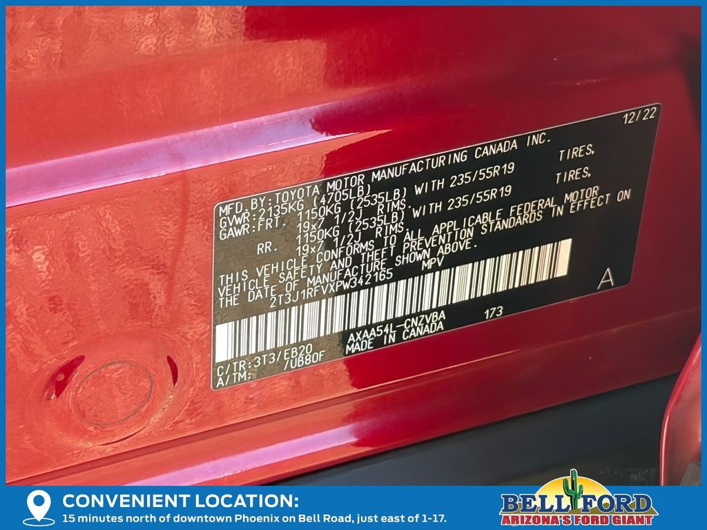 - VIN : 2T3J1RFVXPW342165