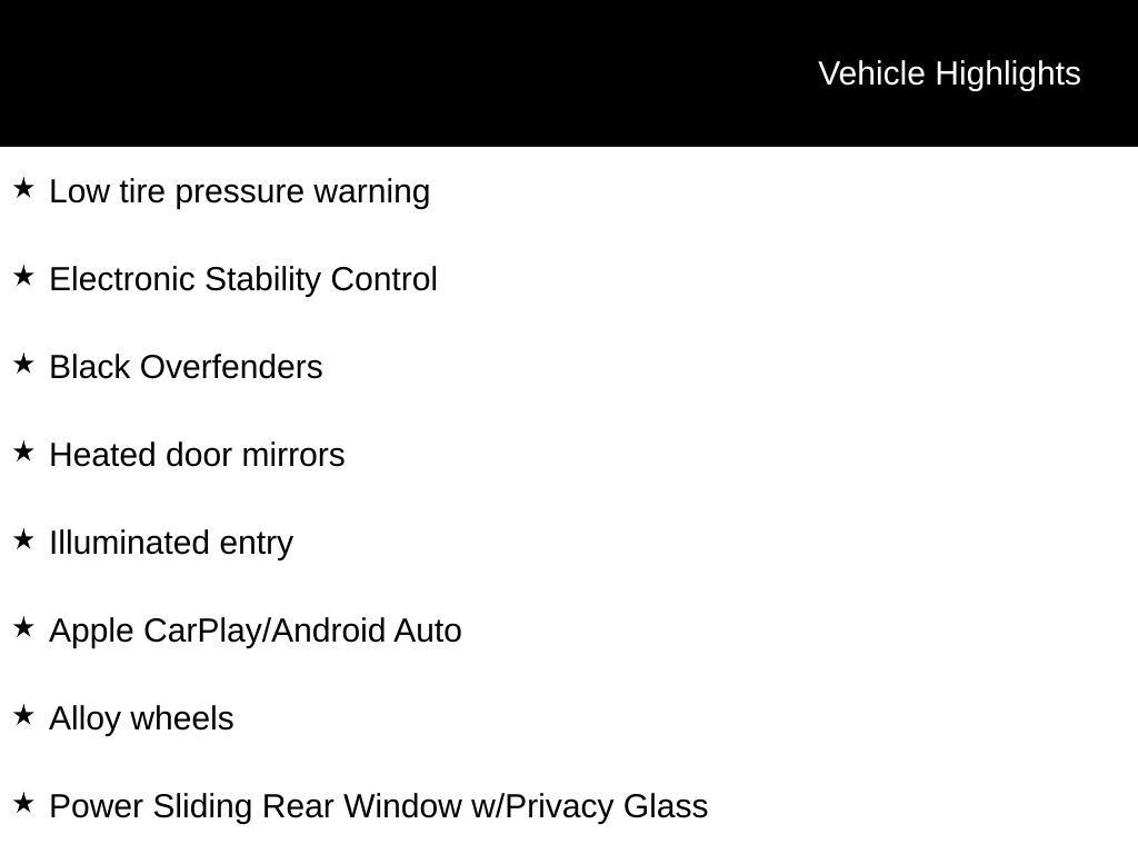 4WD, 120V/400W Deck Mounted AC Power, ABS brakes, Alloy wheels, Apple CarPlay/Android Auto, Black Out Package (TMS), Black Overfenders, Electronic Stability Control, Engine Immobilizer, Front dual zone A/C, Heated door mirrors, Illuminated entry, Low tire pressure warning, Power Sliding Rear Window w/Privacy Glass, Remote keyless entry, Traction control, TRD Off Road Package.